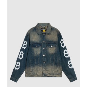 로고 프린트 버튼 데님 재킷