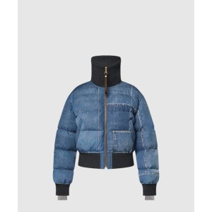 • 데님 프린트 크롭드 푸퍼 재킷